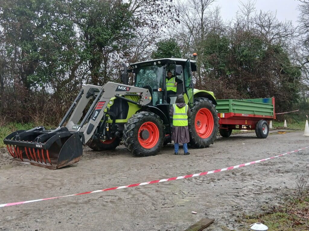L’après-midi a pris un tournant un peu plus compétitif avec l’organisation d’un challenge de conduite de télescopique. Nos 2 juges, Emmanuel VILAULT, formateur machiniste et Anne-Sophie BEUVE-YON, conseillère en prévention auprès de la MSA de la Mayenne ont pu évaluer l’adresse de nos candidats à travers des épreuves mêlant technique, maniabilité, précision et tout cela en assurant une sécurité maximale.