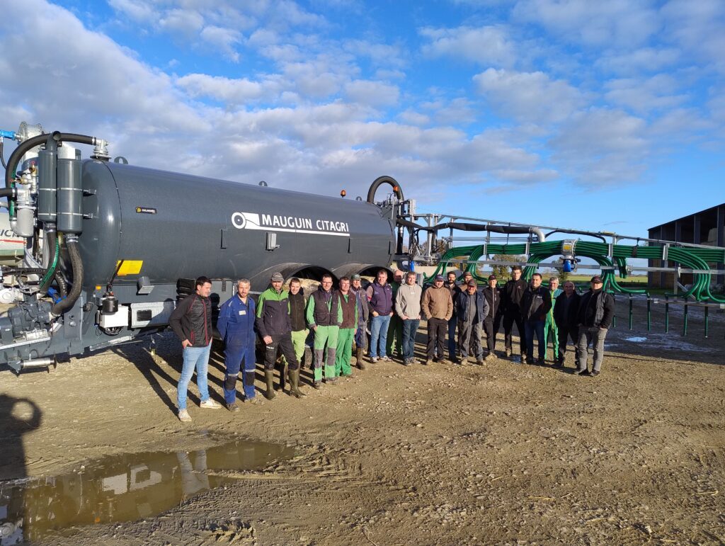 Les adhérents de la CUMA de Denazé se sont réunis avec les établissements Delagrée pour la prise en main de la nouvelle tonne à lisier de la marque mayennaise MAUGUIN CITAGRI. D’une capacité de 21 000 L, elle est équipée d’un pendillard 18 m avec double broyeur répartiteur Alrena, du DPAE et d’un système de vidange Hybride pour la vidange dans toutes les conditions de pentes.