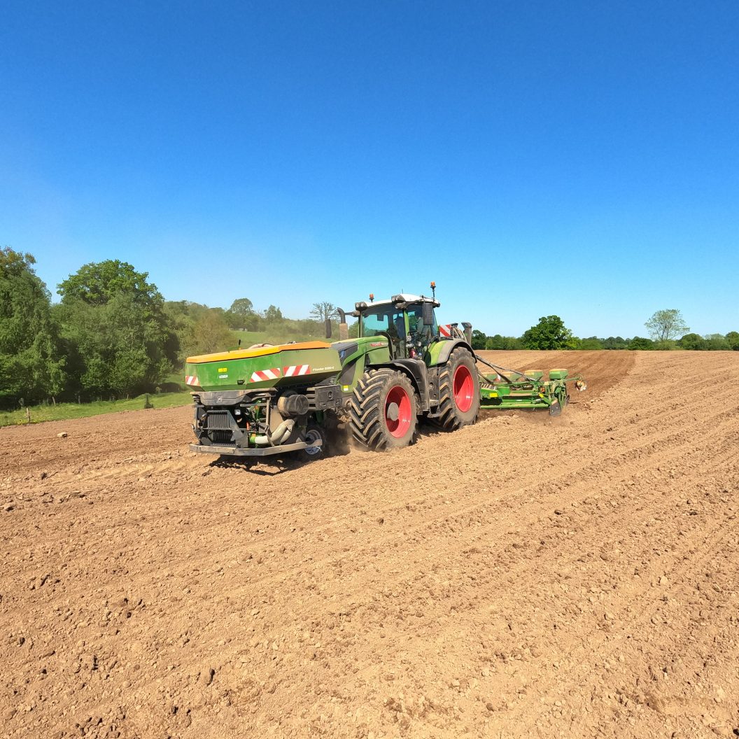 L’ensemble se compose de la herse rotative KG 6 m, du semoir monograine précis PRECEA 8 rangs et de la trémie frontale FTENDER de 2200 litres, le tout de la marque Amazone. Un tracteur Fendt 936 emmène le tout. Il est équipé des standards actuels de la haute technicité comme l’autoguidage RTK (le chauffeur conduit en bout de champ seulement), la coupure rang par rang, le télé-gonflage et un enrouleur avec soufflette pour l’entretien en autonomie.