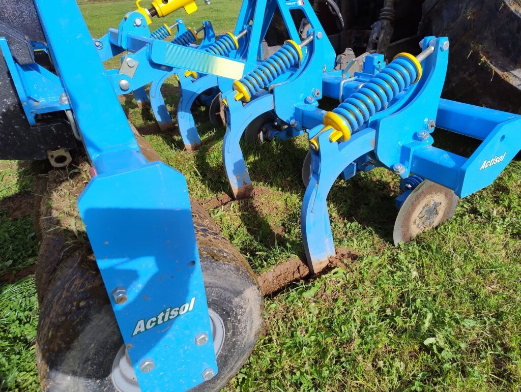 L’outil Herbisol est composé de disques et de dents sur 5 rangs, le disque permet d’ouvrir la végétation pour laisser passer la dent qui vient fissurer le sol. Pour finir, la roue de rappui efface la trace d’ouverture de la dent.